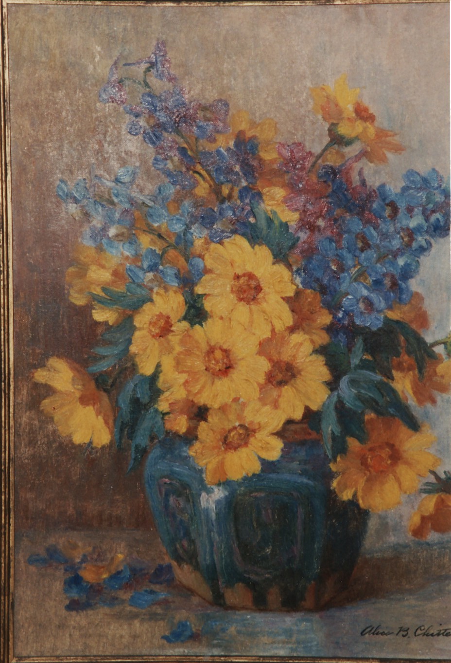 This is a major painting by Alice Chittenden that hung in my parents dining room for about 50 years. It was donated to the Oakland Museum in 2003. Apparently it is no longer being displayed there and its current location is unknown to us