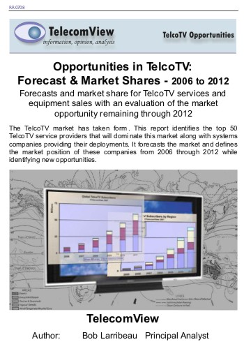 Identifies the opportunities that are available today in TelcoTV services based on a comprehensive forecast and market share analysis for 2006 through 2012.